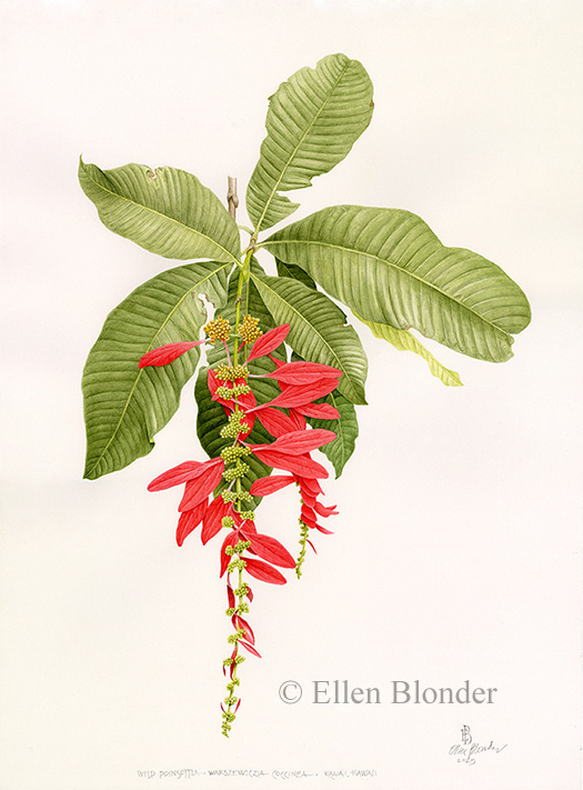 Wild Poinsettia in Kauai (gouache on paper), National Tropical Botanical Garden