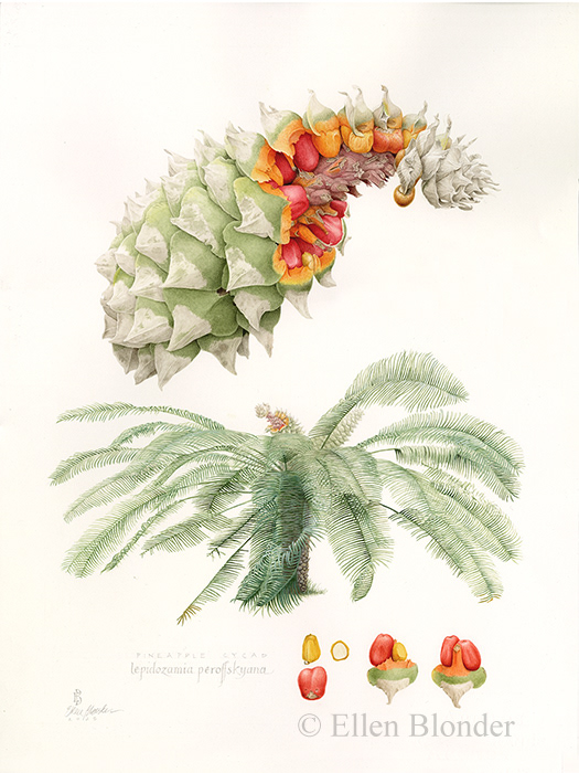 Lepidozamia Peroffskyana (watercolor on paper), National Tropical Botanical Garden